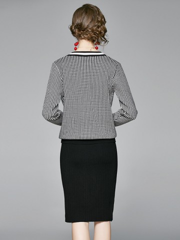 Black V Neck Knit Top with Pencil Skirt 2 Piece Sets