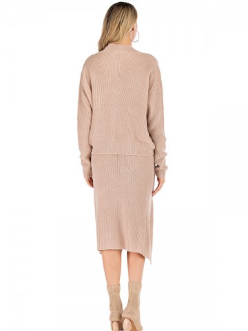 Pink Asymmetrical Hem Knitted Sweater And Skirt Sets