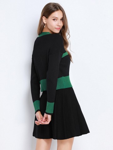 Multicolor Stripe Knit Top & Pleated Skirt Set