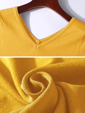 Yellow Deep V-Neck Knitted Maxi Dress