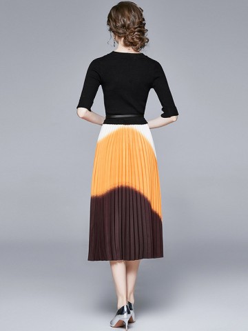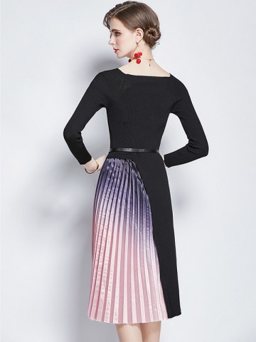 Black Gradient Color Pleated Knitted Dress