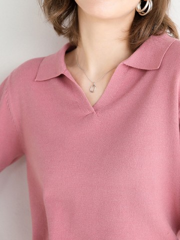 Pink Stretch Long Sleeve Half High Neck Sweater