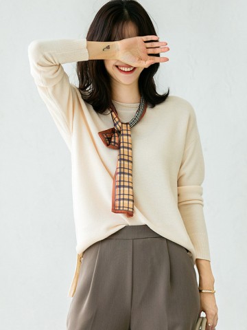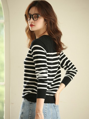 Navy Blue Round Neck Knit Sweaters With Stripes