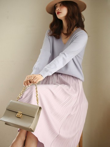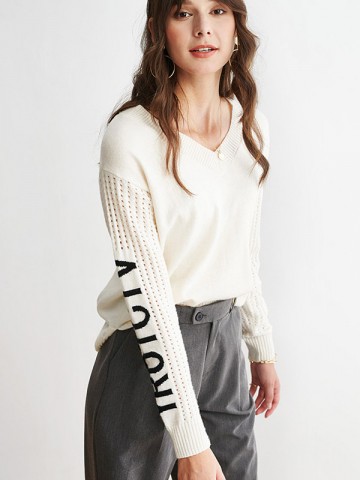 Black V-neck Fashion Knitted Wweater with Side Strap