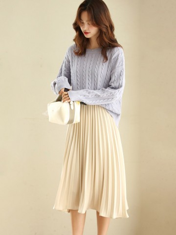 Blue Oversize Lantern Long Sleeve Base Sweater