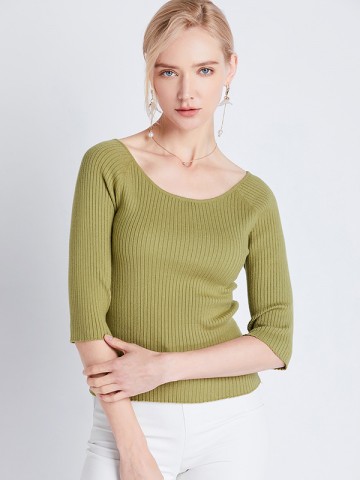Green Long Sleeve Off The Shoulder Bandage Knitted Sweater