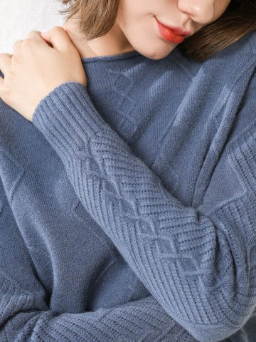 Blue Retro Houndstooth Pattern Knit Sweaters