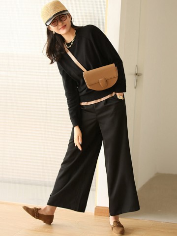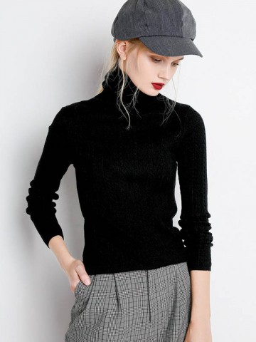 Black Funnel Neck Hollow Elements Knit Sweaters