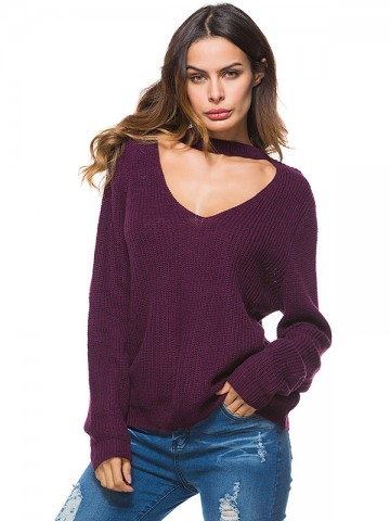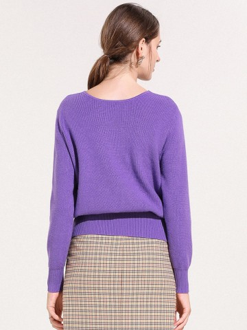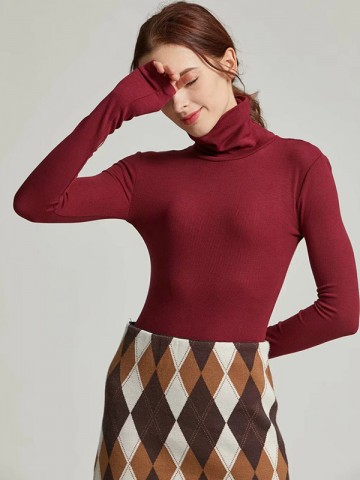 Rose Red Solid Color One Piece Long Sleeve Slim Knitted Sweater