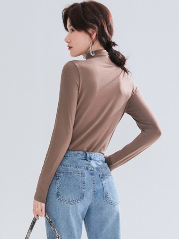 Pink Half High Collar Long Sleeve Knitted Sweater