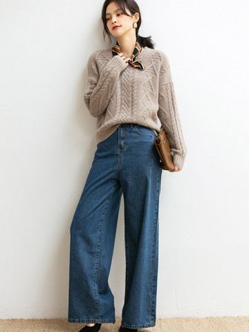 Multicolor Oversize Jacquard Knit Cashmere Sweater With Extra Thickness