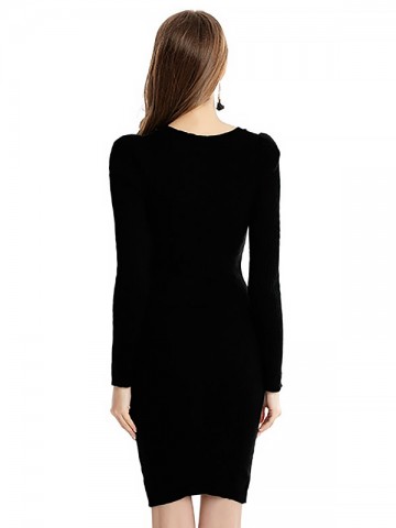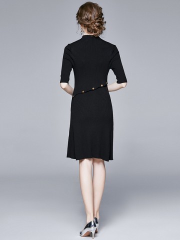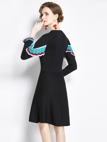 Black Flared Sleeves Solid Color Knit Dresses