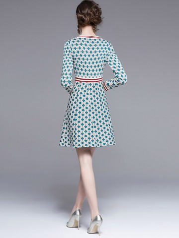 Red Retro Jacquard Elements Knit Dresses