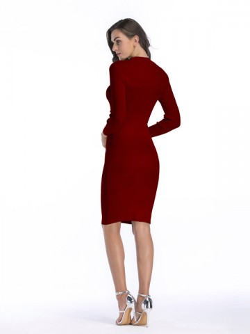 Burgundy Cutout Neckline Bodycon Dress with Rivet Detail