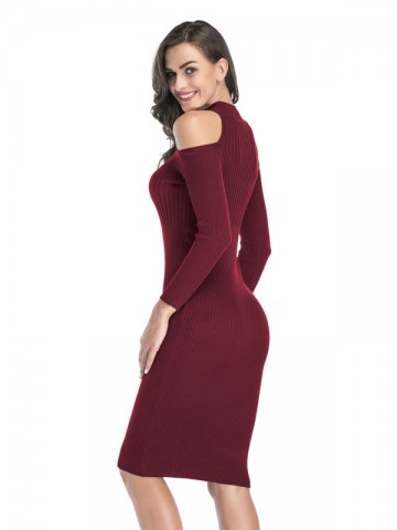Burgundy Cutout Cold Shoulder Bodycon Dress