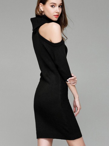 Black Cold Shoulder Bodycon Knit Dresses