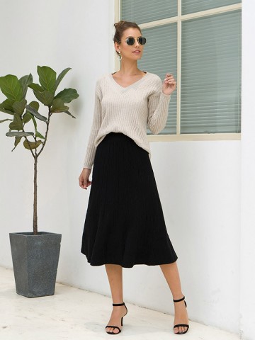 Apricot Oversize V-neck Lazy Style Knit Sweaters