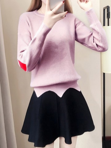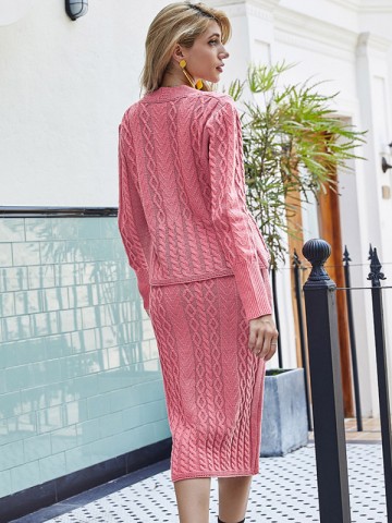 Pink Asymmetrical Hem Knitted Sweater And Skirt Sets