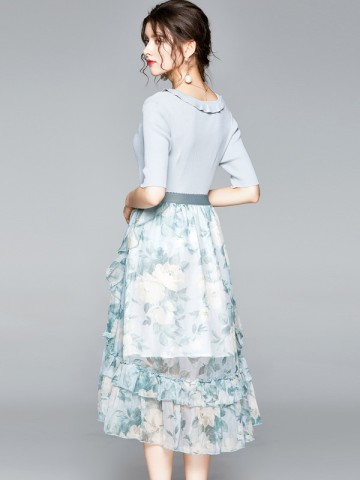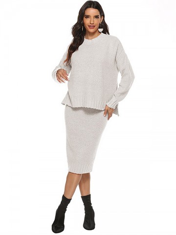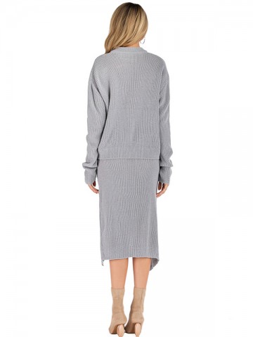 Grey Minimalism Knitted Sweater And Skirt Sets
