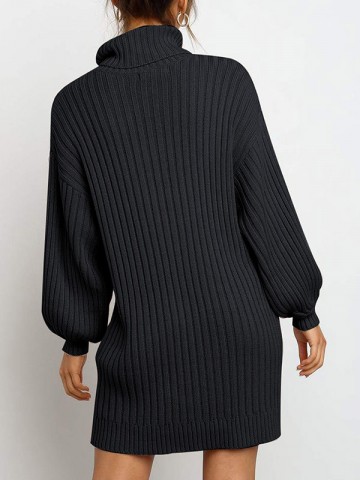 Black Oversize Funnel Neck A-line Midi Knit Dresses