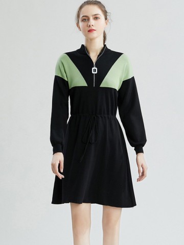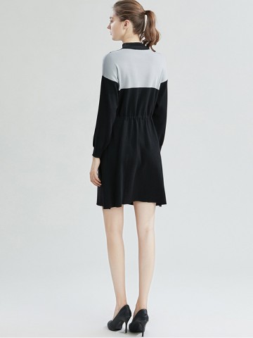 Black Stand Collar Knit Dress with Bowknot