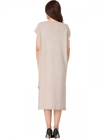 Light Grey Shift Midi Dress with Pocket