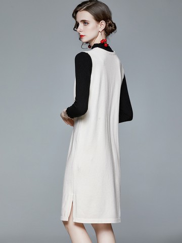 White Midi Knit Dresses With Twisted Flowers Pattern