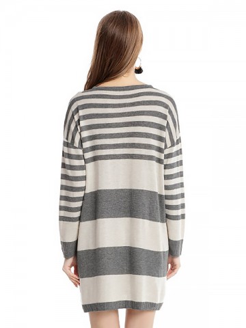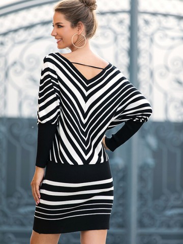 White V Stripe Loose Knitted Dresses With Cape Sleeves