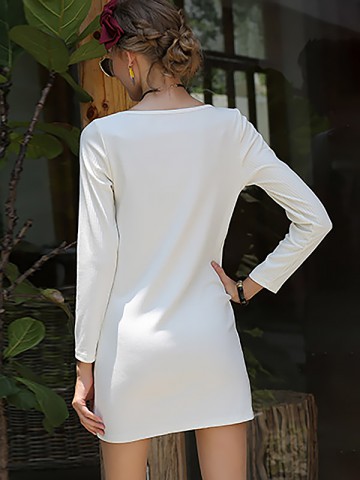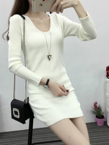 White Sexy V-neck Bodycon Midi Knit Dresses