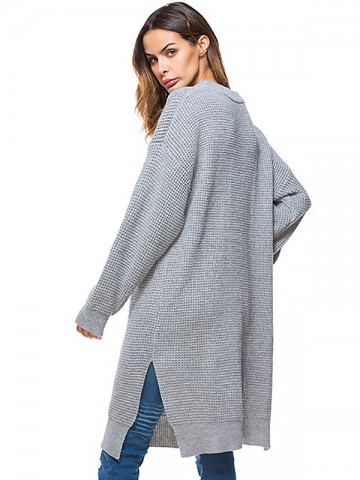 Grey V Stripe Loose Knitted Dresses With Cape Sleeves