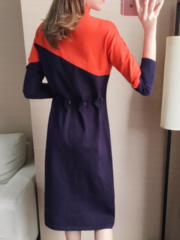 Apricot Roll Neck Ribbed Shift Knitted Dress