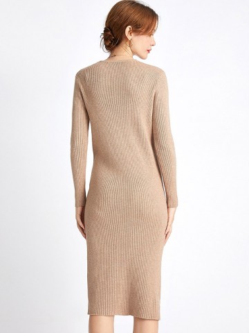 Apricot Round Neck A-line Knit Dress with Knit Top