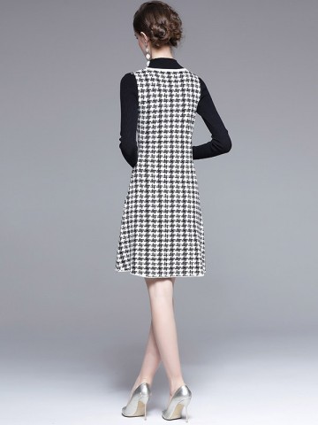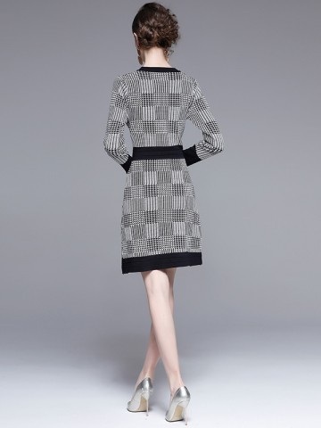 Black Houndstooth Pattern Knit Dress