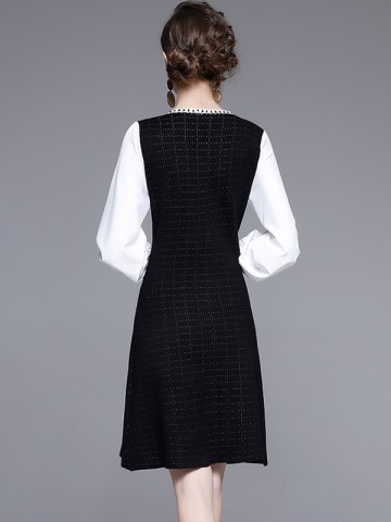 Black Color Block Check Knit Dress
