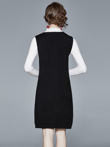 Black Sleeveless Knitted Dress with White Top