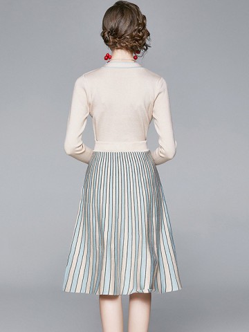 Multicolor Stripe Knit Top & Pleated Skirt Set