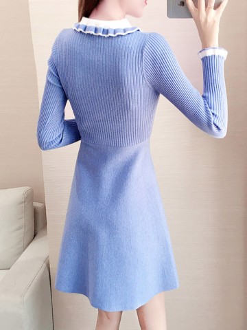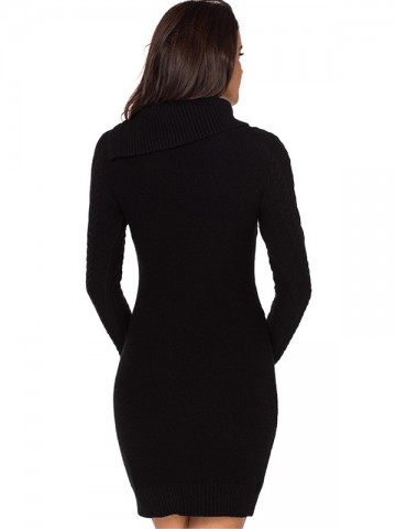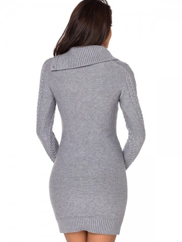 Dark Blue Cable Sweater Dress with Asymmetric Collar