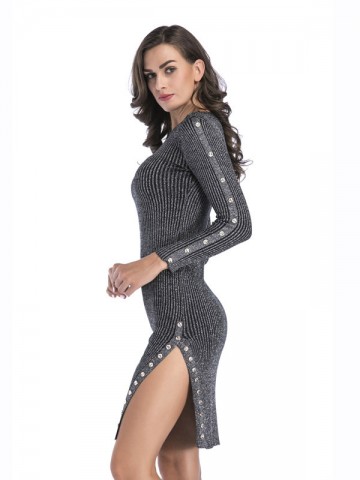 Burgundy Ribbed Style Bodycon Split Mini Dress