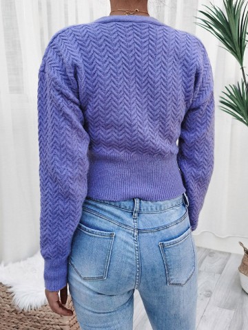 White Oversize V-neck Knit Cropped Tops with Buttons