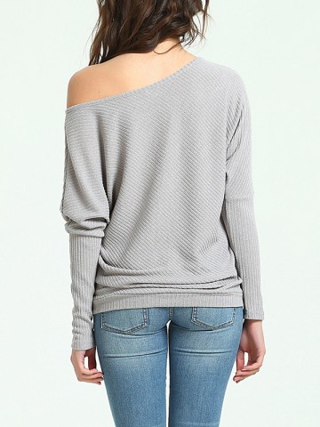 Grey One Shoulder Lantern Sleeve Oversize Top