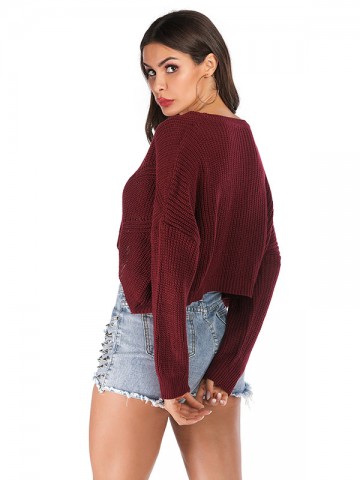 White Oversize V-neck Knit Cropped Tops with Buttons