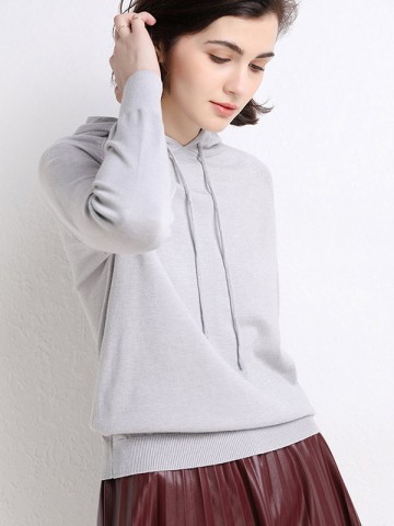Grey Long Sleeves Oversize Fine Knit Hoodies
