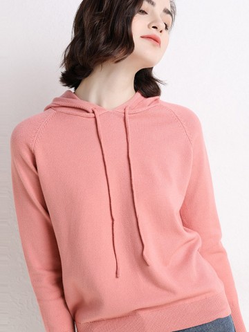 Baby Pink Long Sleeves Medium Knit Hoodies