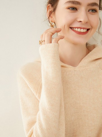 Khaki Cashmere Oversize Long Sleeves Knit Hoodies