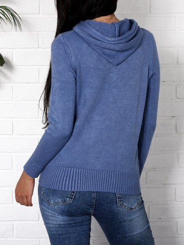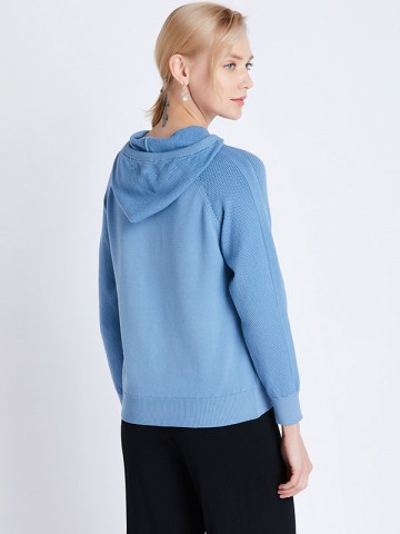 Blue Cashmere Oversize Long Sleeves Knit Hoodies
