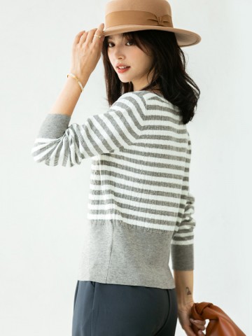Grey Striped Knitted Top