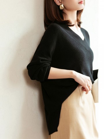 Black V Neck Loose Sweater