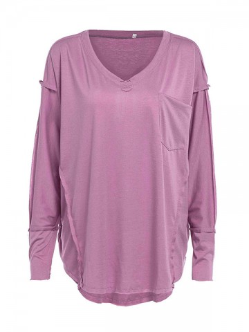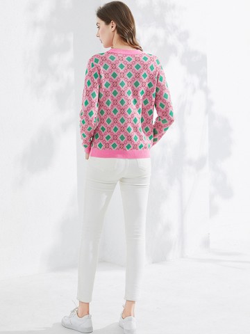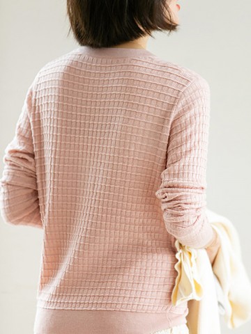 Pink V Neck Knitted Top with Button Decoration