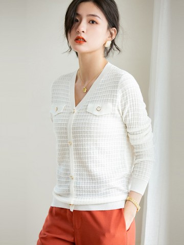 White V-Neck Hollow-out Knit Top