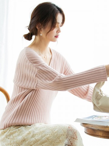 Pink V-neck Ribbed Style Sweater